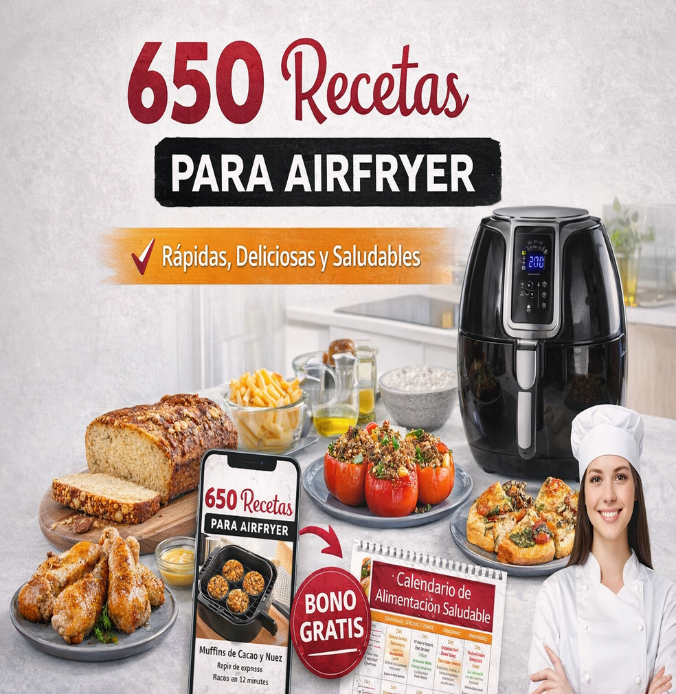 Más de 650 recetas rápidas y nutritivas para hacer en minutos usando tu freidora de aire.